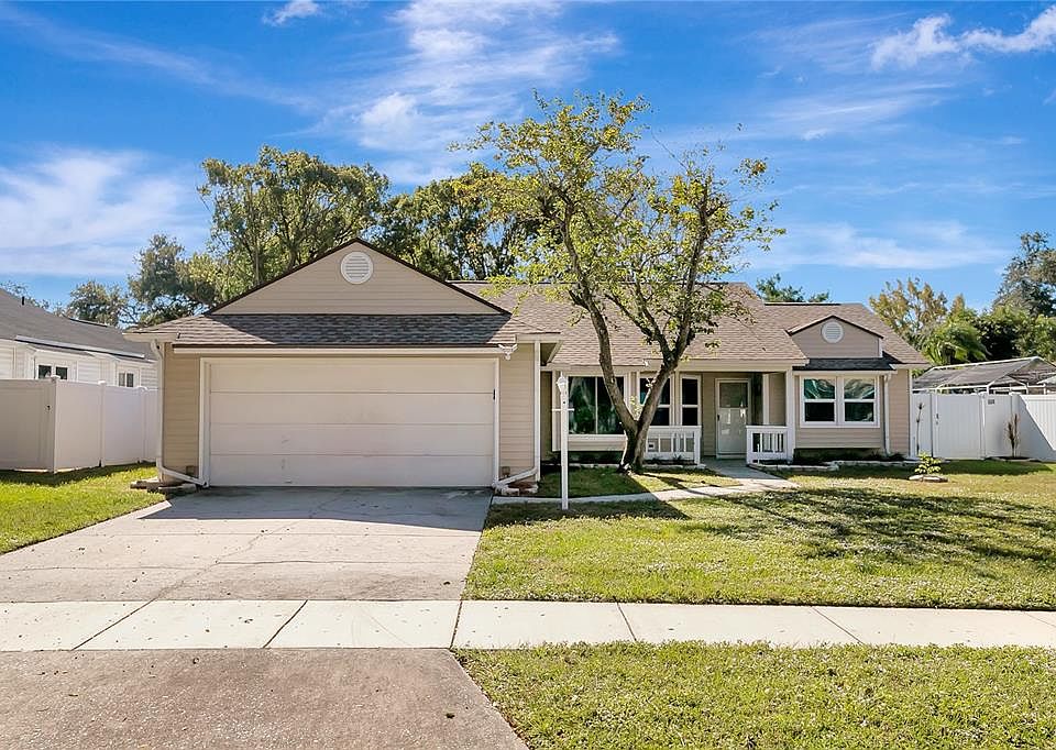 Welcome to this beautifully maintained 3-bedroom, 2-bath home located in the sought-after Palm Harbor school district! Nestled in a beautiful, tree-lined neighborhood with no through traffic, this home offers peace, privacy, and curb appeal. Inside, you’ll find vaulted ceilings and an open floor plan that feels bright and spacious. Enjoy durable ceramic tile flooring throughout along with updated lighting and fans that give the home a fresh, modern feel. The kitchen features stainless steel appliances and an inviting eating nook filled with natural light. The guest bathroom has been newly remodeled, adding a stylish touch. Major updates include a new roof (2022), impact windows (2022), and HVAC system (2019)—providing comfort and confidence for years to come. Relax in the large screened lanai or unwind on the charming front porch. The home also includes a two-car garage for added convenience and storage. Ideally situated near top-rated schools, parks, shopping, and Gulf beaches—this move-in ready home perfectly blends comfort, style, and location!