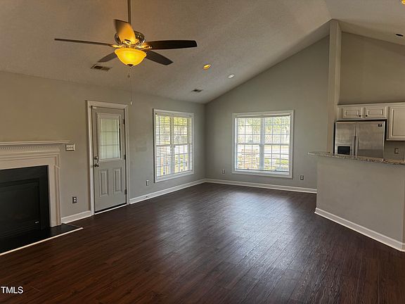 Welcome to this delightful 3-bedroom, 2-bath ranch-style home featuring a spacious open floor plan and soaring ceilings with recessed lighting in the main living area. The inviting living room boasts a cozy gas fireplace and flows seamlessly into a screened-in porch—perfect for relaxing or entertaining—complete with a ceiling fan and a tranquil view of the expansive backyard. A convenient storage room is attached to the rear of the home, offering extra space for tools or seasonal items. Start your mornings or unwind in the evenings on the charming covered front porch, ideal for rocking chairs and enjoying the peaceful surroundings of this beautifully positioned corner lot. The private primary suite offers a spacious retreat with a walk-in closet, double vanity, soaking tub, and separate shower. The kitchen is designed for both function and style, featuring granite countertops and stainless steel appliances, including a smooth-top self-cleaning range, built-in microwave, and dishwasher. A laundry closet adds everyday convenience without sacrificing space. This home combines comfort, charm, and modern features—don't miss your chance to make it yours!