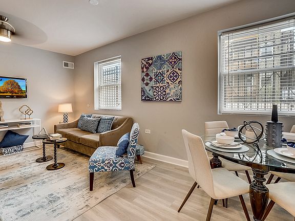 Come home to this updated one-bedroom, one-bath condo in the vibrant Logan Square neighborhood. Enter through the gated courtyard to find this freshly painted unit featuring new vinyl plank flooring, baseboards, central AC, and a bright, open-plan living room with natural light streaming in from both the north and south exposures. The kitchen offers sleek cabinetry with ample storage and stainless steel appliances. The spacious bedroom includes generous closet space, and the newly renovated bathroom adds a modern touch. Recent updates include new flooring throughout, an upgraded bathroom floor, and a NEW(2025) in-unit washer/dryer combo. This well-run HOA features a gated common patio with two tables and gas grills. Hot water is included in the assessments. Major building improvements include a full roof replacement with warranty in 2020, a rebuilt eastern elevation parapet wall, a commercial boiler replaced in 2017, and an intercom system upgraded in 2018. Located just blocks from major transportation, including the CTA Blue Line, as well as an array of popular bars, restaurants, the Bloomingdale Trail (606), Palmer Square Park, and the Logan Square Farmers Market-this home puts the best of city living right at your doorstep. Easy street parking is available.