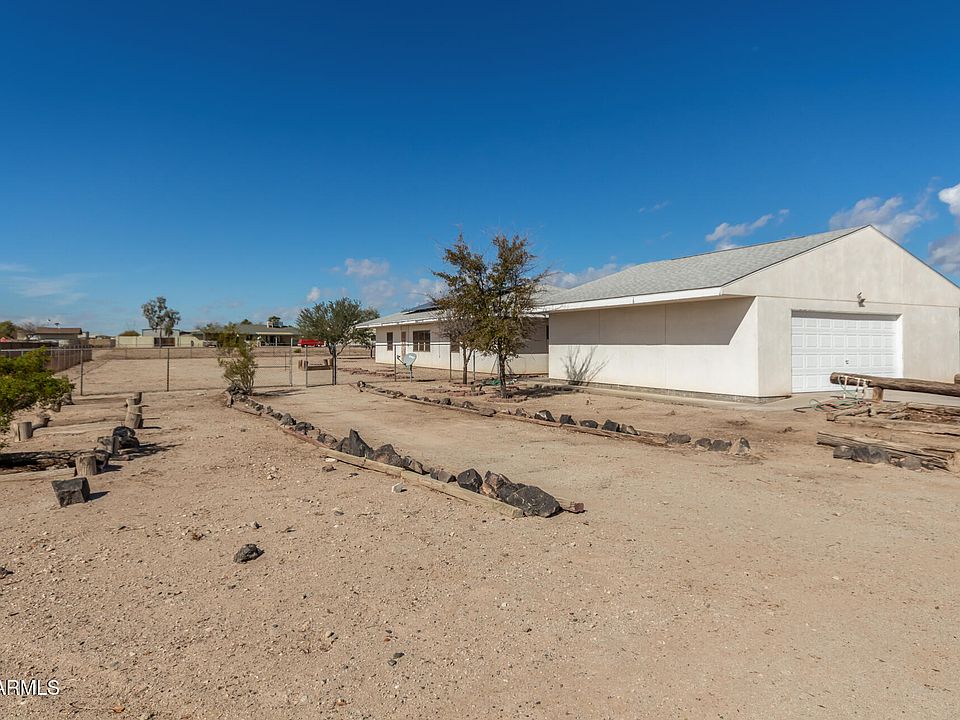 Bring your horses, toys, and big dreams — this fenced 1-acre property with no HOA is your chance to create the perfect urban ranch! A detached oversized garage with large workshop is ideal for hobbies or a home shop. Inside, the 3 bed / 2 bath split floor plan features wood floors, neutral tones, and an inviting open layout. The kitchen offers rich cabinetry, ample counter space, pendant lighting, and built-in appliances. The primary suite includes a spacious closet, dual-sink vanity, and tiled shower. Enjoy the bonus room with ceiling fan, plus a laundry room complete with washer, dryer, and sink. Outside, relax in a yard you transform into your oasis.