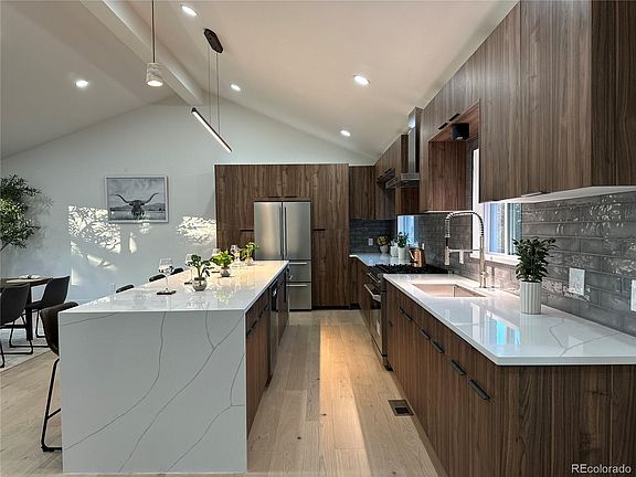 Welcome to 2038 S Hoyt Way — where modern elegance meets Colorado living in Lakewood’s desirable Parkwest Ridge. This beautifully updated 5-bedroom, 3-bath home blends minimalist design with everyday functionality. Entering the home, you’re greeted by an open kitchen and dining area that flow seamlessly together, creating the perfect space for entertaining. The gourmet chef’s kitchen showcases a show-stopping 12-foot Quartz Island, modern finishes, and stainless steel appliances. Continuing from the heart of the home, the expansive living area impresses with skylights, an electric fireplace, and abundant natural light — offering the perfect balance of comfort and sophistication. Sliding glass doors open to the patio, extending your living space outdoors for effortless indoor-outdoor entertaining. The luxurious primary suite includes a spa-like en-suite bath and walk-in closet, while four additional bedrooms provide flexible living options. Enjoy a serene, landscaped backyard and easy access to walking and biking paths, open space. Just minutes from Carmody Rec Center, Foothills Ice Rink, Belmar shopping, and major routes to downtown and the mountains. This home features and includes: all major systems new, LED lighting with nightlight function, smart main entrance door lock, smart thermostat, designer kitchen and bathrooms, smart keypad for garage, smart range hood and bathroom LED mirrors.