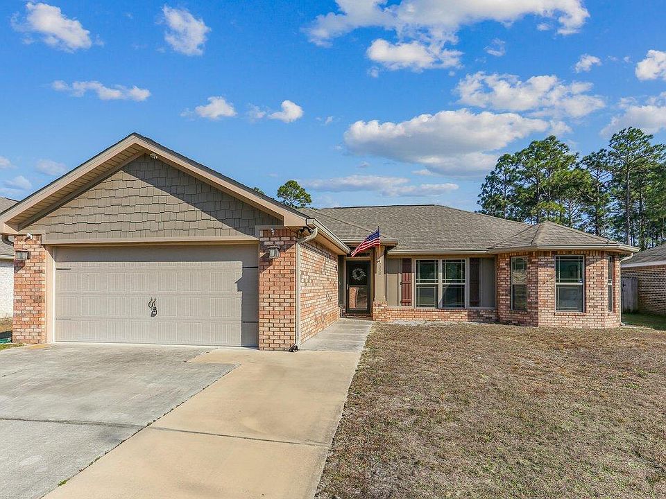 2016 3bd/2ba Craftsman style home less than 10 min to the beach! Brick & Hardy Plank exterior w/Vinyl low-e windows for efficiency. Freshly painted beachy blue w/new light oak look LVP flooring, NO CARPET! (Tile foyer & wet areas) Kitchen equipped w/granite counters, upgraded stainless appliances, breakfast bar, & pantry! Separate dining area, & spacious great room w/cathedral ceilings & built in desk. Large primary suite w/trayed ceiling & bathroom w/walk-in closet, dual vanity, & tile garden tub/tile shower combo. Endless possibilities w/massive back patio! Sprawling backyard is fully fenced & includes water containment system!