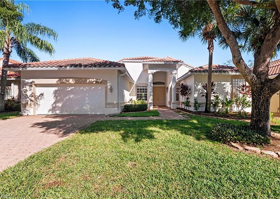 Welcome to this beautifully maintained home in Cascades at Estero, a desirable 55+ community. This property offers an open and inviting floor plan with vaulted ceilings, fresh interior and exterior paint, and abundant natural light throughout. The remodeled kitchen features granite countertops, stainless steel appliances, an electric cooktop, wall oven, walk-in pantry, and a separate dining area. The spacious primary suite includes dual sinks, a walk-in shower, and a generous walk-in closet. Attached to the primary suite is a versatile flex room—ideal for a home office, workout area, TV room, or private sitting space. Two additional bedrooms provide flexibility for guests or multi-purpose use. The screened lanai overlooks one of the most desirable lakefront settings in the community, offering a peaceful backdrop and enhanced privacy. A key highlight of this home is the 3-foot extended garage, providing additional depth suitable for boat storage, a workshop, or extra space for recreational equipment. Cascades at Estero offers exceptional amenities, including indoor and outdoor pools, a fitness center, tennis, pickleball, bocce, billiards, a business center, library, and a full social calendar of community activities. Conveniently located near shopping, dining, entertainment, and Southwest Florida beaches. This home is ready for immediate occupancy and easy to show.