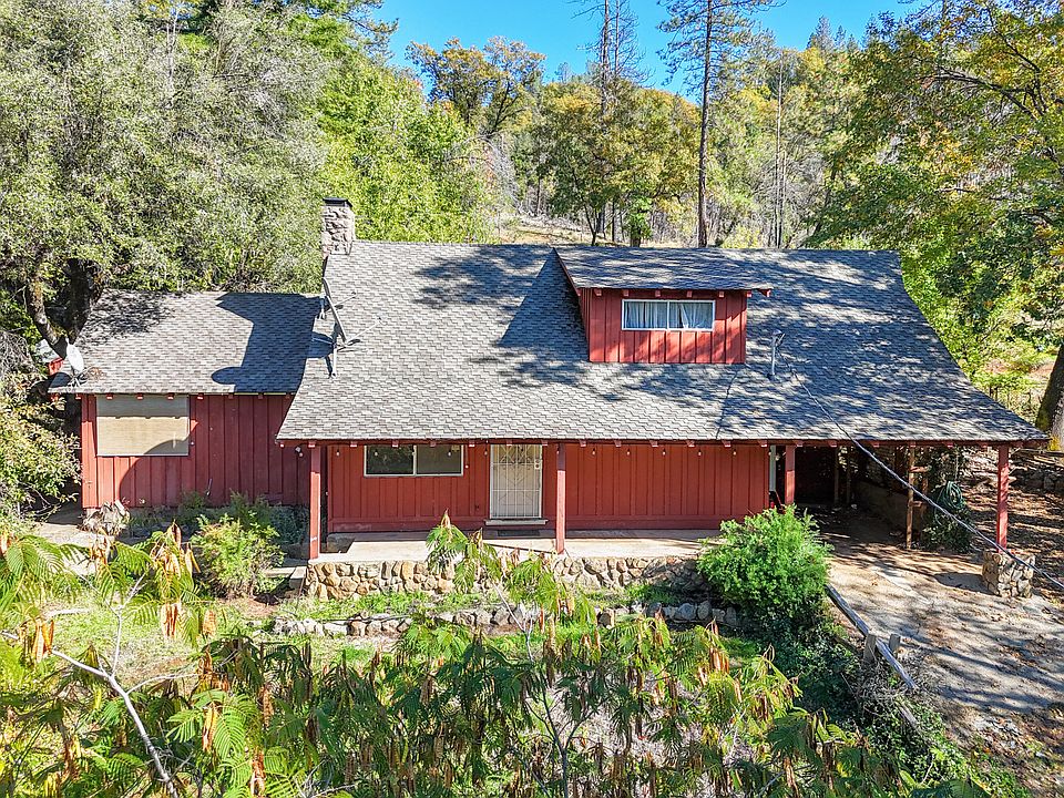 This secluded retreat is a perfect escape into nature! Nestled on 21 acres and adjacent to US Forest Service land, the rustic charm of the 1950's vintage home is truly inviting, with its cozy knotty pine interiors and open beam ceilings. The covered front porch is an excellent spot for enjoying the tranquility of the surroundings. The dual wood stoves add warmth and comfort, making it an ideal spot for family gatherings or peaceful evenings. The full-length back patio is perfect place for entertaining with its BBQ and sink, allowing for exceptional outdoor dining and relaxation while enjoying the stunning forest views. With a downstairs bedroom and full bath, plus two more bedrooms upstairs, there's ample space for guests or family. The fenced hillside orchard and raised bed gardens hint at potential for gardening enthusiasts, while the private water well and spring-fed pond add to the charm of the property. Outdoor adventures await with ATV trails, and the presence of the old cabin and playhouse adds a unique touch for kids. Overall, this home embodies a peaceful, nature-infused lifestyle, offering the perfect blend of rustic living and outdoor recreation. Property extends up a steep hill to bordering US Forest Service property. Along the north edge of property you will find a small seasonal pond and spring. Moss Creek flows along south border of property. This would be an ideal retreat for those who want to get away from the hustle and bustle of city life. Ranch is less than 3 miles from Interstate 5!