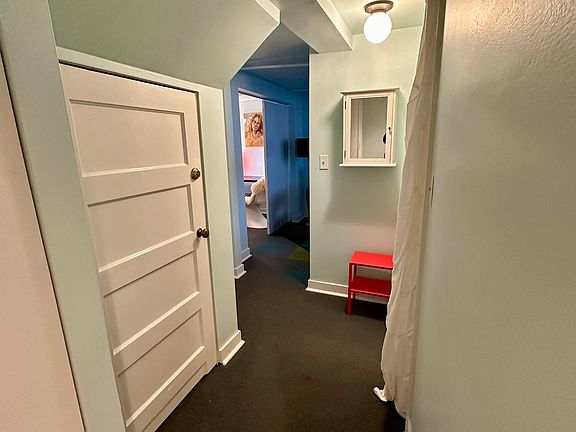 Just past the kitchen, you will find a hallway with the linen closet on your left and the bathroom on your right. The bathroom has recently undergone a remodel with a custom tiled standup shower.