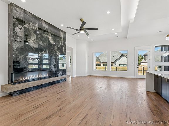 Featuring a New construction contemporary design in Jenks, This Residence boasts an ultra-tall modern kitchen that maximizes storage while making a bold statement. The showpiece Chimney will take your breath away, unlike anything else in the neighborhood.