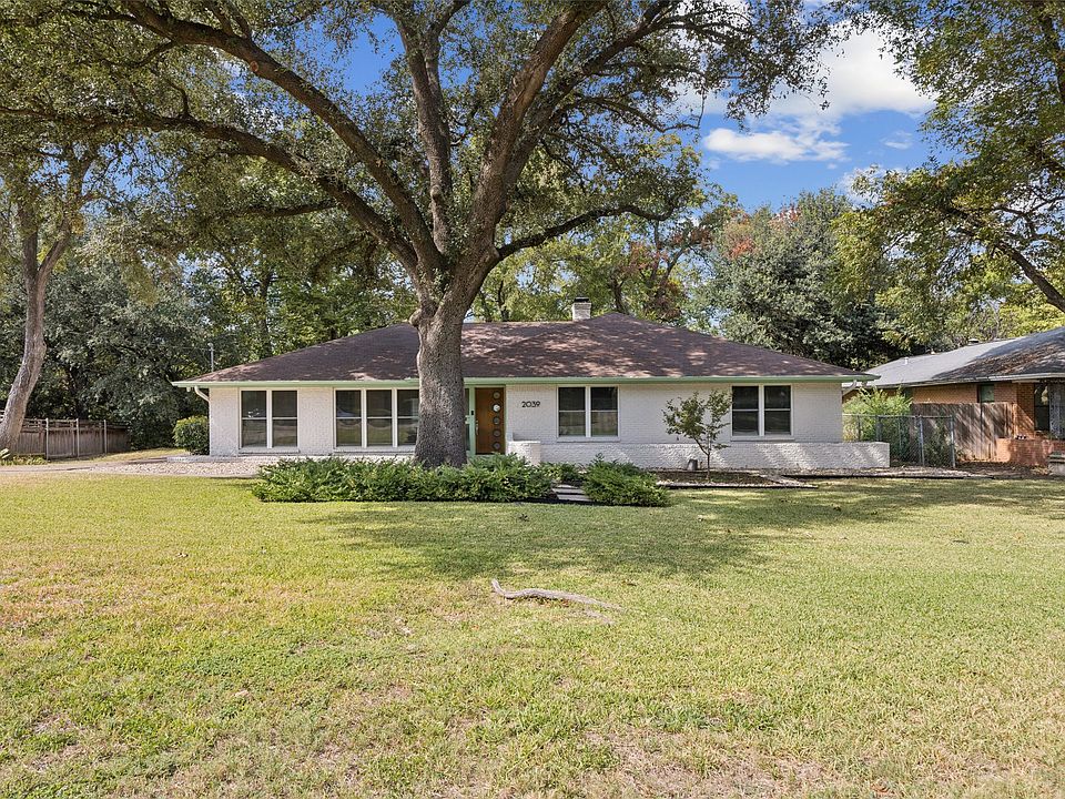 Tucked beneath a canopy of mature trees on one of Elmwood’s most coveted streets, this Mid-Century charmer sits on a rare .3-acre creek lot that feels like your own private retreat. Thoughtfully designed for entertaining, the spacious floor plan offers multiple living areas filled with natural light from energy-efficient Low-E windows—including a stunning wall of windows in the back solarium overlooking the lush backyard and serene wooded creek. The freshly painted exterior highlights distinctive mid-century details like a brick planter, playful trellis accents, and a statement front door. Additional features include a new roof (2022), beautiful wood floors, fireplace, updated windows, gutters and an attached 2-car garage. Just a short stroll to the neighborhood school, parks, and trails—this is a perfect blend of character, space, and location.