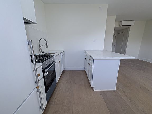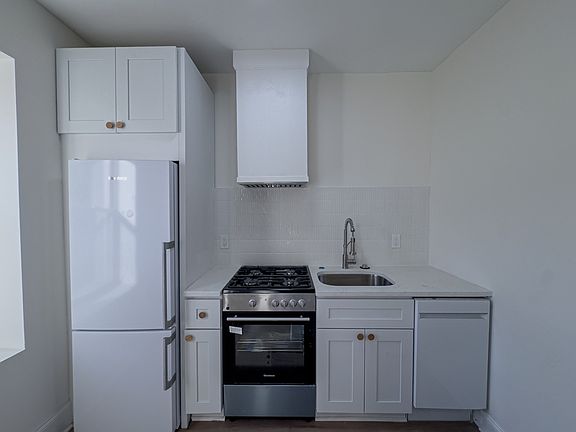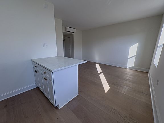 - Full chef's kitchen, white hardwood shaker cabinetry, quartz counters, all-new, high-end appliances, peninsula seating