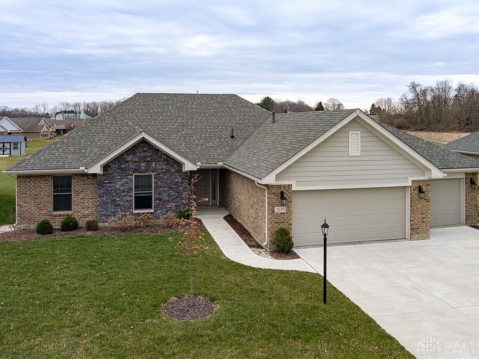 Welcome home to Wright Cycle Estates! Enter your 1700+ sq ft brick ranch to an open foyer. The large living room with vaulted ceiling & gas fireplace pulls you into this comfortable home. Opposite the living room is a breakfast room that walks out to the patio or into your kitchen, which features a pantry, counter bar, granite countertops, and all stainless appliances. Conveniently located off the kitchen is a large laundry room & an oversized 3 car garage. The furnace & Water heater are located in a closet in the garage! The primary bedroom has an ensuite, featuring a private shower/toilet room & walk in closet. The 2 additional bedrooms with ample closet space share an additional guest bathroom. Enjoy the outdoor living possibilities. The back yard offers the patio & a 6 foot high vinyl fence with a life time warranty. Privacy & security. This home is situated across from the park! Wright Cycle Estates is carefree living! Offering access to the bike path, close to US 42 & US 35, & minutes to uptown Xenia!