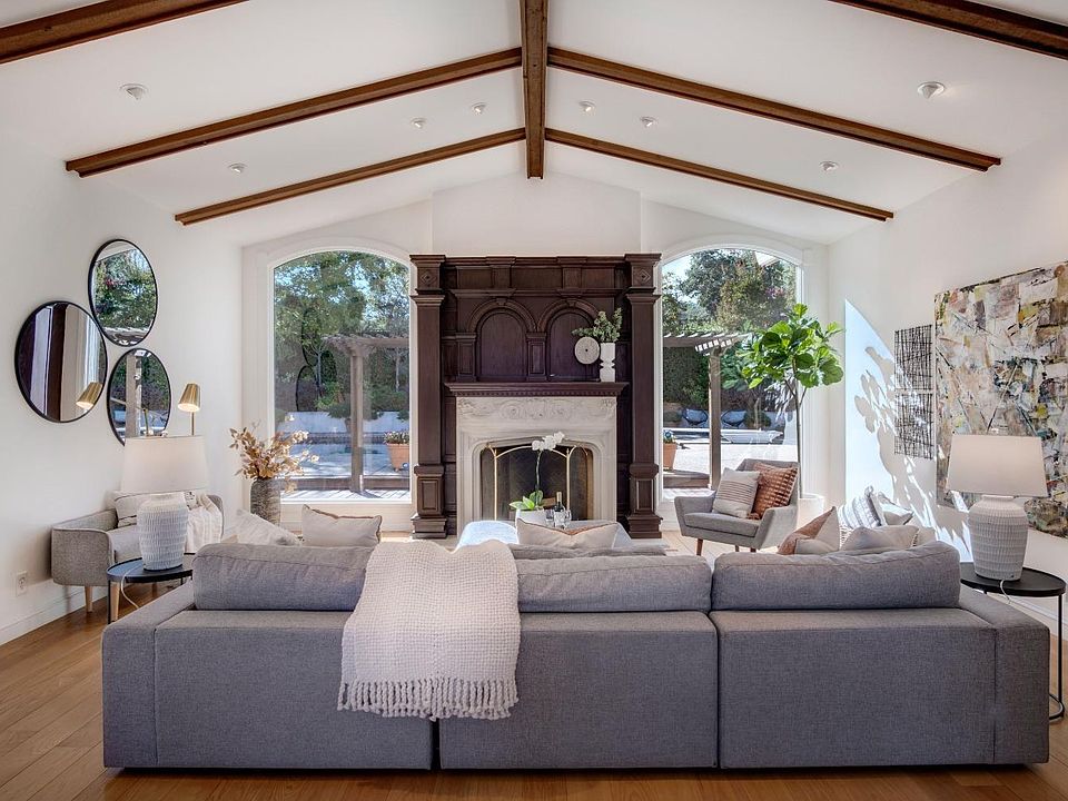 Welcome to 2039 Mill Road - a perfect blend of single-level ease, indoor-outdoor living, and poolside retreat. This home features 4 bedrooms, 2.5 baths, all on nearly an acre of flat land. Step inside and discover a spacious living room with high, beamed ceilings and a striking fireplace surrounded by expansive windows that provide a tranquil view of pool. The formal dining room, with elegant box-wood ceilings, leads to an inviting outdoor space, ideal for entertaining friends and family. Adjacent to the dining room is an updated kitchen with a breakfast nook. The home includes a library (4th bedroom) with exquisite wood details and a cozy fireplace, perfect for quiet moments or family game nights. The primary bedroom offers a peaceful retreat with a glass door leading to the backyard. A unique feature of this property is the spacious, level lot at the front of the home, providing room for an accessory dwelling unit or horse accommodations. The county has indicated the potential for lot split (buyer to verify). A three car garage attached garage completes this special home. 2039 Mill Road offers space, style, and potential, inviting you to embrace Northern California living. Experience the best of Novato's indoor-outdoor lifestyle.