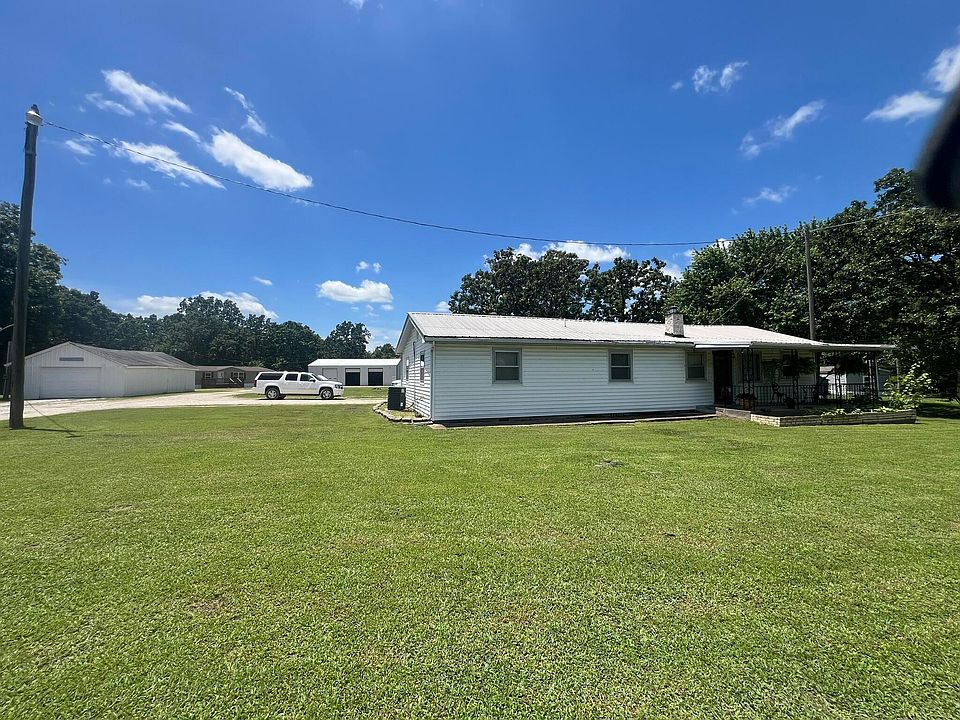 Everything you ask for and more at a price you can afford. Location is great for quick trip to town or run a business off of a main highway. Home features 3 bedrooms, 2 bathrooms, large living area, tons of storage cabinet, island kitchen with lots of cabinets and dining. Home has been remodeled inside and out with a nice metal roof. Outside you will find nice inground storm shelter and a 3 bay very nice shop with heat and air, bathroom and office. (A business was in the shop at one time). There is an additional garage (single). Land features a circle drive, hookup for an additional home or spot to build one, pond, timber, deer and turkey hunting options, fencing and a charming yard. This is a solid price for so many options on this charming property.