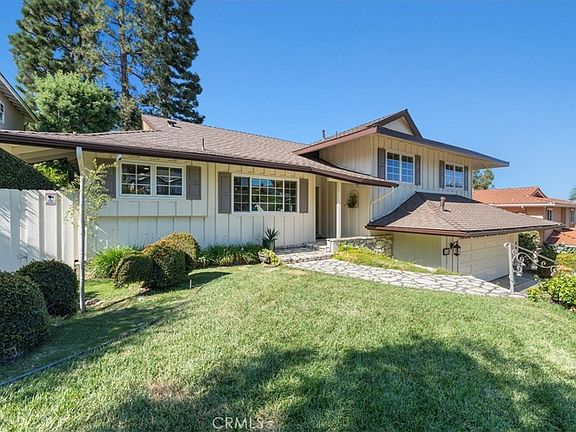 Nestled in the tranquil community of Rancho Palos Verdes, this stunning split-level home is perfectly situated on a serene cul-de-sac, offering both privacy and picturesque surroundings. As you approach, a charming stone pathway leads you to the inviting front door. The heart of the home is the kitchen, bathed in natural light from large windows. The kitchen features a cozy breakfast table area, an island and an abundance of crisp white cabinetry, all complemented by an elegant stone backsplash. This space seamlessly flows into the living room, where an impressive fireplace serves as a focal point. The formal dining and living area is framed by oversized paned windows, offering a scenic view of the park-like rear yard. Step outside through the sliding doors off the living room to discover a brick patio, perfectly elevated to overlook a serene waterfall that cascades into a koi pond below. The lushly landscaped yard is reminiscent of a botanical garden, providing the ultimate in privacy and a tranquil retreat from the world. Back inside on the upper level, the primary suite offers a luxurious escape with its expansive walk-in closet and a cozy built-in seating area, perched at treetop height—a perfect spot for morning coffee. The suite is spacious enough to accommodate a desk, creating an ideal space for a private home office. The bright en-suite bathroom features a soaking tub, dual sinks, and a separate shower. Two additional well-appointed bedrooms on this level share a bathroom, thoughtfully designed with neutral tile and modern fixtures. The lowest level of the home is dedicated to relaxation and entertainment, with a large family room anchored by a second fireplace. Built-in bookcases and an entertainment counter with a bar sink add to the room's appeal. A convenient half bathroom is also located on this level. Sliding doors open to a covered patio area, perfect for lounging and taking in the views of the lush, verdant landscaping that surrounds the home. This home is a true oasis, offering a blend of comfort, elegance, and natural beauty.