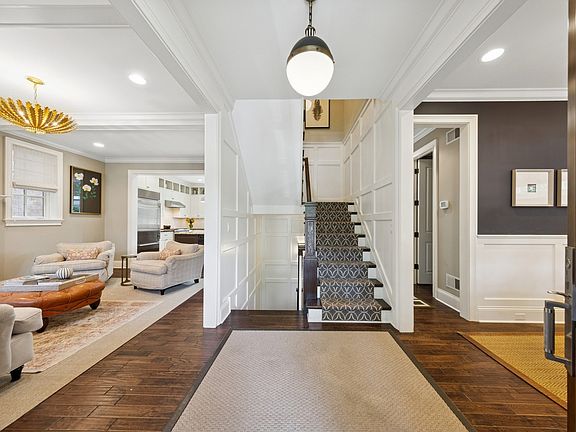 Timeless sophistication meets modern comfort in this classic all-brick four-bedroom, three-full and two half-bath home built by Mangan Builders. Ideally situated on a picturesque, tree-lined street within walking distance of Coonley Elementary, neighborhood parks, and the best of Lincoln Square and North Center dining and shopping. This home represents elegant city living in one of Chicago's most desirable enclaves. Spanning nearly fifty-feet of frontage, the home welcomes you into a gracious foyer and the living and dining areas have designer lighting and gleaming hardwood floors. The chef's kitchen designed by Jean Stoffer is a showpiece - featuring high-end appliances, bespoke cabinetry, granite countertops, and an oversized island that anchors the space for both cooking and entertaining. A wall of windows on the back of the home frames the breakfast area providing southern exposure and exceptional natural light with views of the Topiarious-designed blue-stone patio and garage rooftop deck, and two-car garage below. Upstairs, the primary suite offers a luxurious private retreat with a walk-in closet and large primary bath with marble finishes, a soaking tub, water closet and a glass-enclosed shower. There are two additional generously-sized bedrooms with a jack-n-jill bath and large laundry room with cabinetry. The fully finished lower level includes a rec room, butler pantry, guest suite with full bath, gym and abundant storage. This home is wired for sound throughout all levels. Thoughtfully designed and impeccably maintained, this residence showcases Mangan's signature quality craftsmanship, refined detailing, and enduring style.