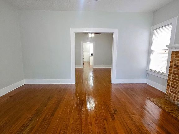 This charming home features rich hardwood floors, a cozy brick fireplace, and built-in shelving that adds character and functionality. The updated kitchen with stainless steel appliances, classic clawfoot tub bathroom, and convenient in-unit laundry make everyday living easy. Enjoy the spacious layout and a beautiful backyard deck perfect for relaxing or entertaining outdoors.