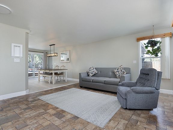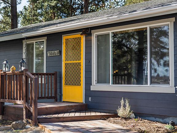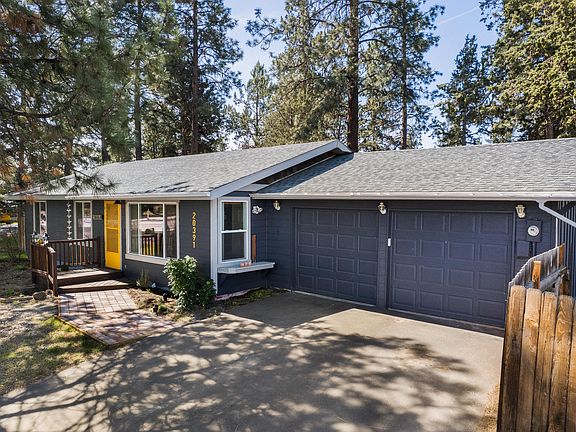 Charming ranch home in SE Bend on a beautiful .36-acre lot with mature trees. This single level home has been updated nicely and still holds some of it's original unique features. Open floor plan with vinyl and tile flooring in most of the house. The kitchen boasts quartz countertops, stainless appliances, tile floors, and a deep basin sink. The laundry and front bath have a custom-made barn door, storage armoire, and unique brick flooring. The primary suite has been updated with a newly remodeled bath including a 6 ft soaking tub, double sinks, and a door leading to the fully fenced back yard. Enjoy the privacy this lot has to offer! With a big back deck, 2 storage sheds, and a multi-use storage building with heat and ac available. The side yard features a separate fenced area for RV parking with electrical hook up. All this and a great location next to the Bend Golf and Country Club.