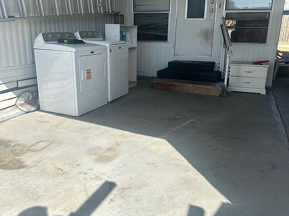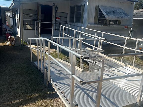 Motivated Seller! Value priced for quick sale! Two bedrooms, one bath, two large sheds, a lanai, a covered patio, and a ramp are all part of this new to the market home! The metal roof and HVAC were both replaced in the past year. The washer and dryer were purchased new in 2024 and are included. All furnishings in the photos remain with the home. Nestled in a charming 55+ community with a clubhouse, shuffleboard, laundry facilities, and bark park. The low $700 lot rent includes water, sewer, trash, and lawn maintenance. Community approval is required.