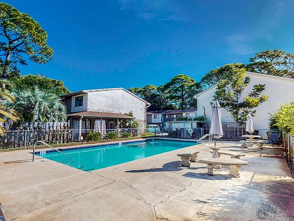 Great unit that is convenient to downtown Ft. Walton and the Beautiful Beaches on Okaloosa Island. Unit has been freshened up with interior paint, carpet, New HWH, Roof is 2021. The Kitchen has plenty of cabinets and countertop work space.  Nice Privacy fenced back yard with storage closet located off the patio. Large bath upstairs with laundry. This complex is located close to Publix, Restaurants, Shopping and the Landing Waterfront Park. This unit is move in ready and waiting for you!