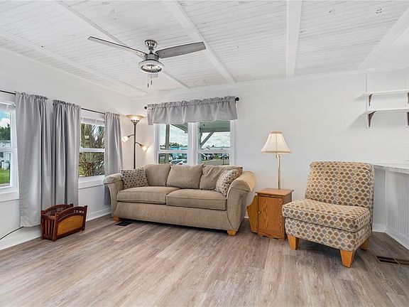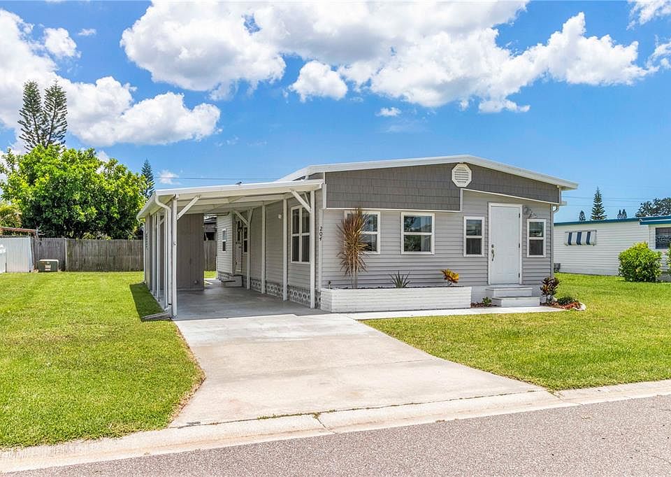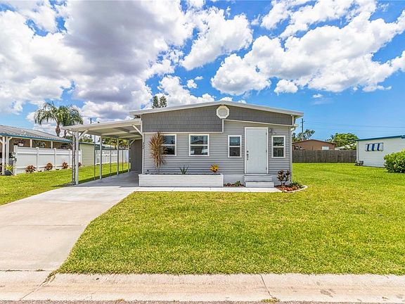 Beautiful renovated 1 Bedroom, 1 Bathroom plus Den home situated on an oversized lot. You will fall in love from the moment you arrive and see the wonderful curb appeal with its new vinyl siding, new gutters, and freshly painted exterior. Enjoy entertaining and cooking in the wonderful new eat in kitchen, new appliances, new counters with breakfast bar, crown molding, bead board, T & G in living room, freshly painted interior, vinyl flooring through out, plus an eye catching barn door feature. Renovated bathroom has two sinks with vanities plus extra storage and shower. This home even has an indoor utility room with new washer, dryer and extra storage cabinets! You will have peace of mind knowing this mobile home has new thermal windows and trim, new vapor barrier, re-insulated ceilings, new insulation, new exterior doors, new drain pipes and water lines recently replaced, 10 tie downs replaced in 2021, new water heater, and rodent barrier around the entire home. Casa Loma has no age restrictions and you own your lot. HOA fees are only $75 a month which includes a lakefront community heated pool, recreation center, and on site manager. Close to restaurants, shopping, airports, the beaches, downtown, I-75, and so much more!
