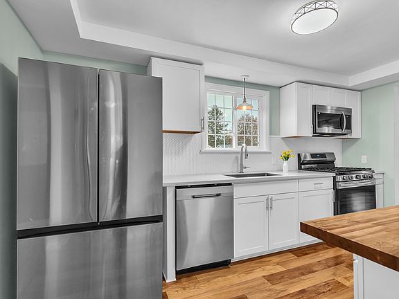 Welcome to your dream home! Nestled on almost a half-acre corner lot adorned with mature trees, this beautifully maintained residence offers the perfect blend of comfort and modern convenience. Detached heated 2-car garage, multiple outdoor spaces to enjoy outdoor living with multiple patio areas perfect for entertaining or relaxing in your fenced backyard. The home boasts a newly renovated kitchen equipped with new stainless steel appliances and butcher block countertop, ensuring a fresh and modern cooking environment. With approximately 1,500 sq ft., the main floor features a welcoming living room which includes a brick surround gas fireplace with built-in shelves, separate dining room, kitchen, a full bathroom, and one bedroom. The second floor hosts two additional bedrooms and a convenient half bath. Partially finished basement has additional living space, a laundry room, utility room, and a versatile space was used as a playroom. This home is equipped with HVAC system that includes a new AC unit, new furnace, UV light purification system, and a whole-house humidifier (all replaced in 2023). A brand-new roof was also installed in 2023 for both the garage and house. The main living areas feature beautiful hardwood floors, complemented by durable vinyl flooring in other spaces. The hot water heater was also updated in 2023, providing peace of mind and efficiency. This charming home combines a serene outdoor setting with modern amenities, perfect for families or anyone looking to enjoy a comfortable lifestyle. Don't miss the opportunity to make this beautiful house your new home! Schedule a showing today!