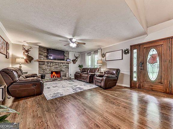 Stunning 2-Story Home on 3.4 Acres with Private Pond & In-ground Pool in the Heart of Clayton Community! Welcome to your dream retreat in Canton, Georgia! This beautifully updated 2,000 sq. ft., 2-story home with a finished basement sits on an incredibly private and usable 3.4-acre lot featuring a stocked 1-acre pond and a sparkling in-ground pool; perfect for relaxing, entertaining, or outdoor adventures year-round. Step inside and be welcomed by a spacious family room adorned with gleaming hardwood floors and a stacked stone, wood-burning fireplace. The oversized primary suite is conveniently located on the main level and showcases a completely renovated en-suite bath (2024) with sleek, modern finishes. The main level also includes a laundry room and a stylish kitchen updated in 2020, featuring stainless steel appliances and plenty of cabinet space. The bright and airy dining area is surrounded by large windows that flood the space with natural light and offer direct access to the rear deck overlooking the picturesque pond and pool. Upstairs, you'll find two generously sized bedrooms and a full bathroom. The finished basement features a full bath; perfect for pool days and a large flex room ideal for a guest bedroom, playroom, or additional storage, and easy walk-out access to the backyard. A two-car garage adds to the home's convenience. Exterior updates completed in 2020 include new windows, siding, garage doors, and an expansive deck. The pool liner was replaced in 2022, and the roof and water heater were both replaced just five years ago. HVAC was replaced in 2015, offering added peace of mind. This property offers a unique blend of privacy and convenience, nestled on a quiet street yet minutes from shopping, dining, and I-575. Publix is only 5 minutes away, and Riverstone Parkway is just 10 minutes from your doorstep. Don't miss the opportunity to own this private oasis in a highly desirable location It's time to schedule your appt today!