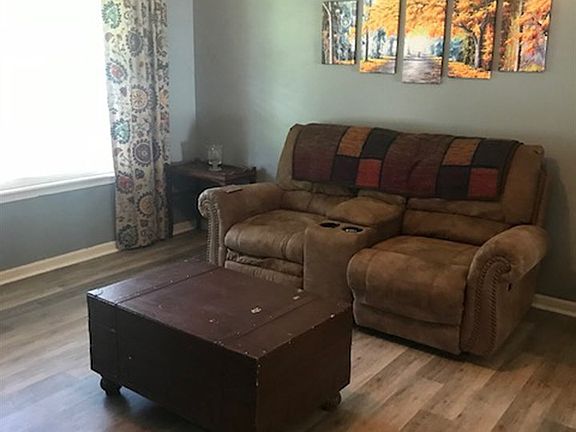 Great family home with 4 bedrooms, 2 baths, luxury plank vinyl in living area and hall, carpet in bedrooms, and tile in wet area. Larger kitchen comes fully equipped with nearly new stove, microwave, dw, and ref. Bedrooms are spacious size with ample closet space. Master has whirlpool tub. Sit on your covered patio overlooking your above ground pool that will have a brand new liner at closing, and wood decking around pool. Plenty of storage with storage shed. Quiet area.Good neighbors.USDA Eligible.