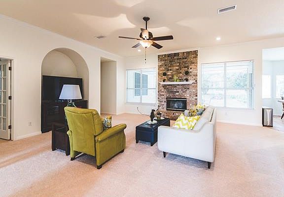 Desirable one-story Georgetown home on a beautifully landscaped 1 acre lot. Open floor plan with 4 bedrooms and 2 baths. Updated kitchen with granite counter tops and stainless steel trimmed appliances opens to a bright living room with brick fireplace. Spacious master bedroom and master bath with dual vanity, separate shower & jetted tub. Fresh paint & new carpet throughout makes this home move-in ready. Large patio, gorgeous private yard, detached air-conditioned office (or workshop), & 3-car garage. Quiet neighborhood, close to all Georgetown has to offer.