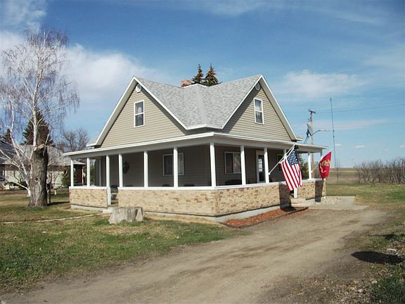 The charming wrap-around covered porch when you drive up will make you want to come in. This home is in really nice condition and main floor features living room, master bedroom with direct access to full bathroom, laundry area (washer and dryer stay), and kitchen/dining area with updated oak cabinets, all appliances including refrigerator, gas stove, dishwasher, and microwave--you will love the pantry. There is a mudroom off the kitchen that is perfect for storage or future access to an attached garage that you can build. Upper level has 2 great kids bedrooms with fun colors and a playroom or office bonus area. There is room to build a garage on the lot and storage shed is included. Basement is accessed by trap door and houses the furnace and water heater and room for storage. This home is located in a very nice community 20 minutes South of Minot, 20 minutes to Lake Sakakawea and Audobon Lakes, Northern flyway hunting. 1 block from the community school, convenience store and 2 blocks from Highway 83 access. New water heater 2017.