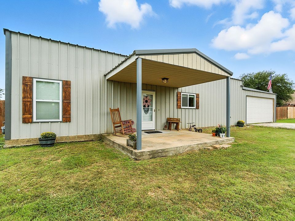 This 3-Bedroom, 2-Bath Barndominium-Style home offers Modern Charm and Comfortable Living. Featuring a large open front yard and huge fenced in back yard with Storage Building, Covered front and back Porches, and a two-car Garage, it’s perfect for anyone looking for a peaceful place to call home. The interior is in great condition featuring Wood Flooring throughout most of the home, Vaulted Ceiling in the Open Concept Living and Kitchen Area and a recently installed Wood Burning Stove in the Living Room. The metal frame and metal siding construction provides low maintenance and an insurance discount with most companies. Located in the great community of Lipan and within walking distance of the School, this home is move-in ready and full of potential! Call today for a showing and the first opportunity to own this Great Property at an Unbelievably Great Price!!!