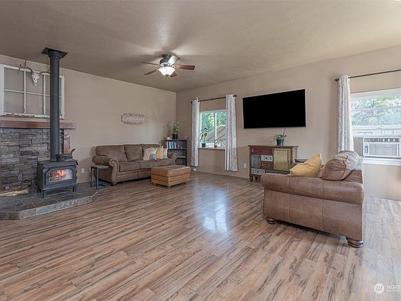 Huge potential in this awesome home. Main level has very large great room w/ an efficient wood stove for those cold winter nights. 9' ceilings & large windows give home a spacious feeling w/ lots of character. The kitchen is one you'll love to fix those special dinners in. Basement can be terrific guest space with 2 bedrooms, bathroom, kitchenette (also perfect for canning), living room & an additional bedroom w/ a non-egress window. This large corner lot has a terrific fenced back yard w/ a very large deck perfect for those outdoor gatherings. Hot tub, fire pit, outdoor bbq, blue tooth fire alarm, 4 raised garden beds, peach, apricot, pear incl. Detached double car garage & 6,996 sq ft corner lot finishes this nice package. Call today!
