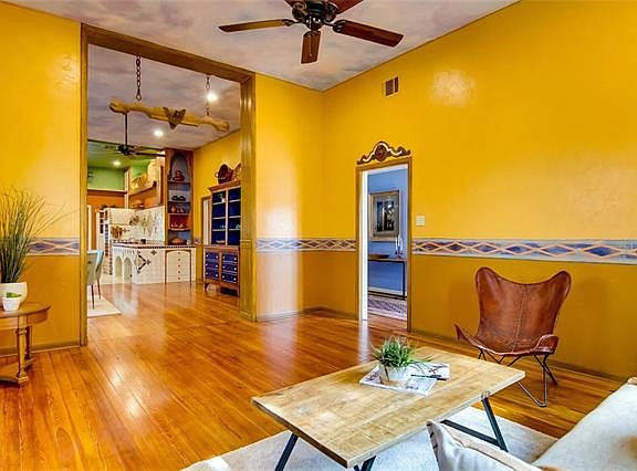 One of a kind home nested on over a quarter acre lot! Beautiful & colorful home includes so many unique features; Hacienda inspired kitchen w/imported hand painted tile counter tops, hand painted flooring art, Stainless appliance package including;Italian design 6 burner gas cooktop & so much more! Beautiful pine wood flooring through out entry, living/dining, beaded board finish throughout, 11 foot ceilings, Covered Patio, & porch. Backyard is large enough for a Possible Expansion or Rezoning for Duplex.