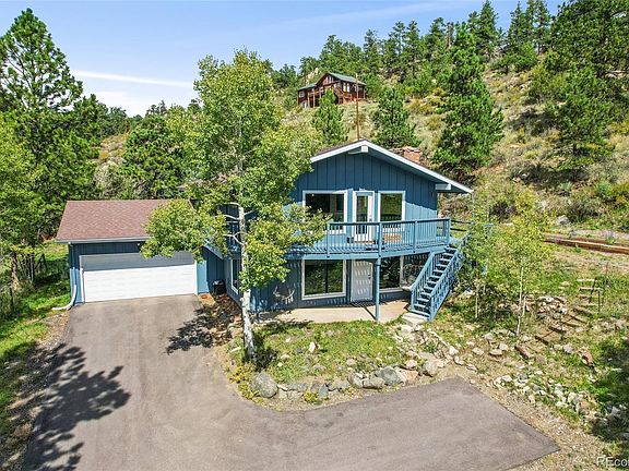 Nestled in the serene mountain town of Bailey, this spacious 3-bedroom/3-bathroom home offers the perfect blend of rustic charm and modern updates! The open floor plan features high, vaulted ceilings, creating a bright and airy atmosphere. The living room and downstairs family room both boast wood-burning fireplaces, adding warmth and character to the home. The beautifully updated kitchen is a chef’s dream, with painted cabinets, quartz countertops, a new sink and faucet, new appliances, and a stylish tile backsplash—all designed to enhance the breathtaking mountain views while you prepare dinner. The primary suite provides a peaceful retreat with ample space and comfort. The lower level, with its separate entrance and bathroom, offers the potential to be used as an Airbnb, with the necessary county permit. The property is well-equipped for outdoor living, featuring a large deck with mountain views, a newer hot tub, garden beds, a fully fenced indoor/outdoor dog run, aspen grove and a partially paved driveway leading to the 2-car attached garage. Additionally, the south facing views help keep the snow and ice in winter, to a minimum. Recent updates include new triple-pane windows, luxury vinyl plank flooring and baseboards on the entire upper floor, as well as updated bathroom vanities with cultured marble and engineered stone counters. The home is equipped with a newer well pump, furnace, and a whole-house water filtration system installed in 2023. Additional septic volume was added in 2022. This home is not only about tranquility and stunning views but also about staying connected. With high-speed Starlink internet and upcoming fiber internet installation, you’ll enjoy the best of both worlds—solitude and connectivity. This property is a rare find in Bailey, offering a peaceful retreat with modern amenities and endless possibilities.