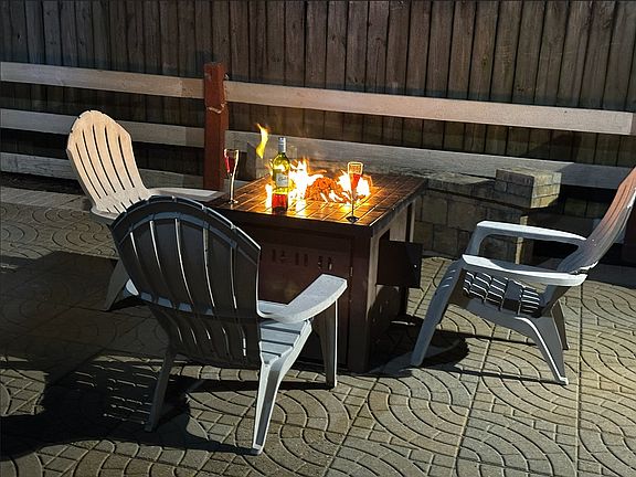 Enjoy stylish lighting, a private balcony, and a fenced backyard oasis with BBQ and social areas. Gather around the shared gas fire pit, grill at the barbecue station, or relax at picnic tables under Victorian light posts. Added outdoor surveillance cameras provide extra peace of mind.