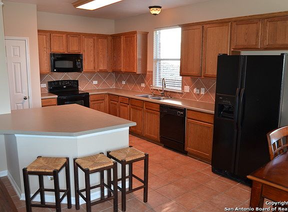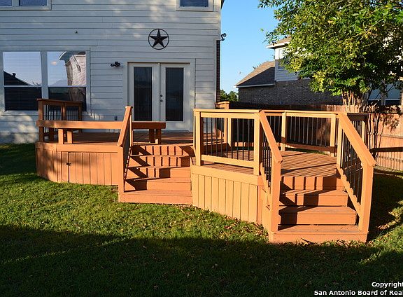Lovely 2-story brick, David Weekley home on quiet, safe cul-de-sac lot. Mature trees. Meticulously kept landscaping welcomes you in. Big deck in backyard. Open floor plan. Island at kitchen. Mock fireplace with flames on by a remote create ambiance wanted in a fraction of the time you would have to build a fire in. Ceiling fans throughout. 2" blinds. Lots of natural light. Fresh paint. Smooth cooktop. Long front porch. Alcove in Master makes for an excellent office. Convenient to Randolph AFB.