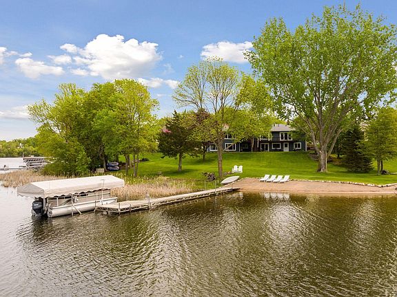 Spectacular ¾ acre lot boasts 172’ of frontage with private sandy beach, gradual elevation, professional landscaping, and breathtaking sunsets! This beautiful rambler offers a fabulous layout with panoramic lake views from every window, open floor plan, owners suite, four season porch, three season porch, paver patio, hardwood floors, vaulted ceilings, 3 fireplaces, main floor mudroom with laundry. Walkout lower level is complete with game room and wet bar. Plenty of room to accommodate all your family and friends with 6 bedrooms and 3 bathrooms.