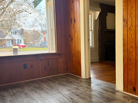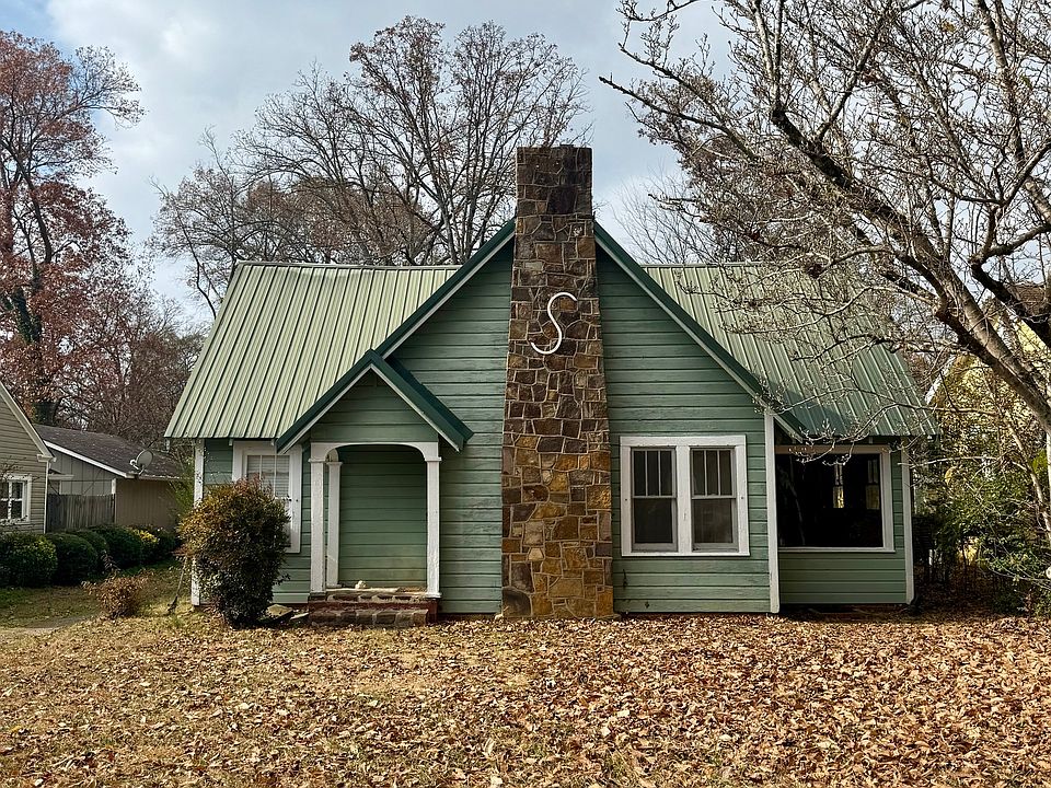 Welcome home to this adorable storybook 2 bedroom, 1 bath cottage that blends timeless charm with functional living. Inside, you will find hardwood floors through the main living areas. The living room features a wood-burning stone fireplace, creating the perfect cozy centerpiece for gatherings or quiet evenings. Separate dining room for hosting meals and entertaining. The sunroom, finished in easy care vinyl flooring, brings in abundant natural light, making it a perfect spot for morning coffee, an office or cozy reading nook. A separate laundry room, also vinyl flooring, adds convenience and extra storage options. The kitchen offers a pantry and unique touch with a built-in table and bench seating, creating a charming breakfast area. The backyard provides an outbuilding perfect for storage, hobbies or tools and plenty of open space to design our own outdoor retreat. There is ample room to add a fire pit, entertainment area, garden space or patio-making the yard a true extension of the home. With comfortable bedrooms and 1 well-maintained bath, this home is ideal for first-time buyers, down-sizers, or anyone looking for a property full of character. The durable metal roof and mature landscaping add to the home's low-maintenance appeal.