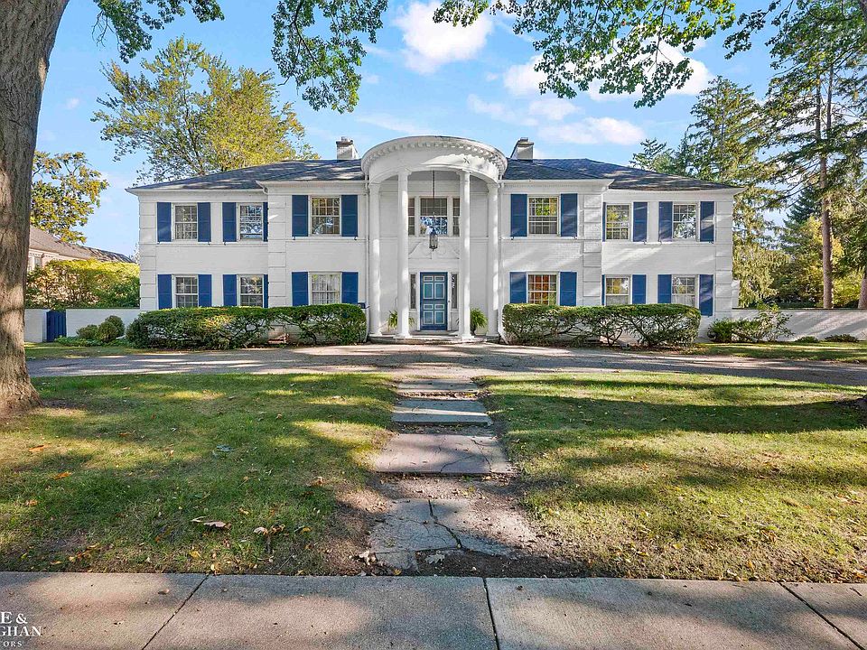 Stately Colonial on Coveted Cloverly Road. Classic elegance meets opportunity in this distinguished Grosse Pointe Farms residence, set on an exceptional lot in one of the city’s most desirable locations. A sweeping staircase greets you in the grand foyer, setting the tone for the home’s timeless character. Hardwood floors, multiple fireplaces, and rich architectural detail carry throughout. The spacious living room with natural fireplace, paneled library with fireplace, and bold red dining room all overlook the expansive backyard, framed by mature trees for complete privacy. A screened sun porch anchors the main level, offering the perfect spot for morning coffee or evening cocktails. The first-floor bedroom with ensuite bath provides flexibility for guests or home office use. The kitchen with eating space opens to a brick patio and the park-like yard beyond. Upstairs, the primary suite captures the home’s old-world charm — featuring a private sitting room with fireplace, sleeping porch, generous walk-in closet, and ensuite bath with balcony views of the grounds. Additional bedrooms are large, with abundant closet space and well-appointed baths. The lower level includes a vintage-style recreation room with bar, ideal for gatherings, plus ample storage. A three-car attached garage completes this gracious home. Bring your vision to a property with classic bones, extraordinary presence, and a lot that simply doesn’t come along often.