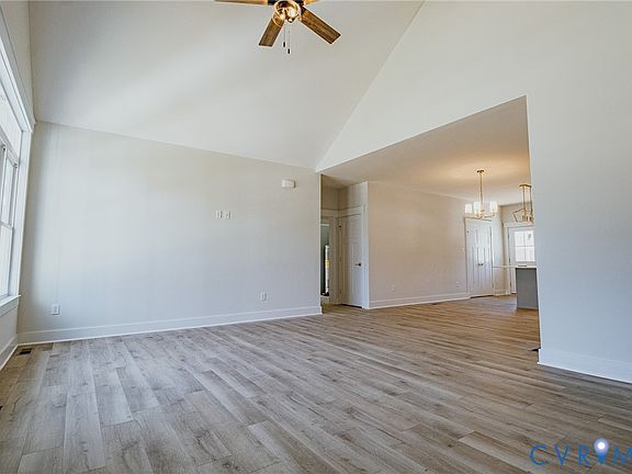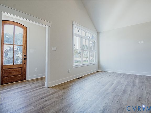 Inside, the split floor plan centers around a soaring A-frame living room and open kitchen, perfect for both entertaining and everyday living. The gourmet kitchen features quartz countertops, a generous island, custom painted cabinetry, and premium Café GE appliances. The primary suite boasts a walk-in closet and a spa like en suite with marble flooring, a double vanity, and a tiled shower with a sleek glass enclosure. The additional hall bath includes designer porcelain tile, while luxury vinyl plank flooring and brushed brass hardware complete the home’s sophisticated touches. Downstairs, the unfinished 660 sq. ft. basement with backyard access is framed for future rooms and plumbed for a full bath, giving you endless options to expand. Conveniently located near Fort Lee, shopping, and major interstates. This home combines style, function, and opportunity. An absolute must-see!