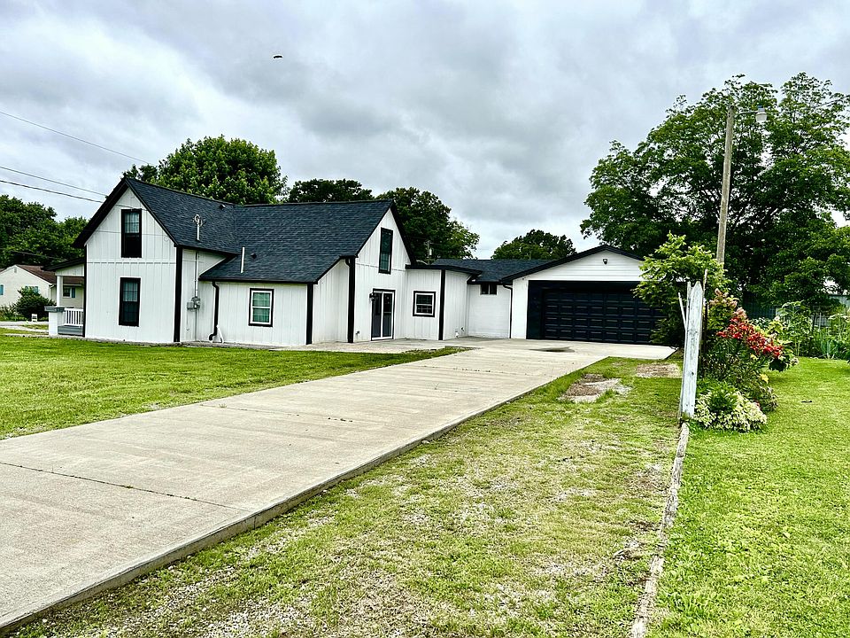 Contemporary farmhouse on a corner/half-acre lot! This 4-bed 2.5-bath home was completely remodeled and finished in 2024. New main floor joists, new roof, new electrical, new plumbing, new flooring, new drywall, new paint, new HVAC, new water heater, and new kitchen appliances! The inviting kitchen has slider patio doors, gorgeous granite countertops, plenty of cabinet space and a large island with seating for 4. The black tempered glass slide-in range, stainless steel vent hood, matching refrigerator with in-door ice-maker, dishwasher and microwave give the space a sophisticated feel and upscale functionality. The cozy living room offers views of the lawn and front yard. The large first-floor primary suite has natural light and an elegantly designed bathroom with modern tile. A new addition was added with a large foyer, large half bathroom, laundry area, utility closets, and a partially finished 19x20 workshop room that attaches the garage to the main house. On each side of the staircase upstairs you'll find the 3 bedrooms and a bathroom with shower. Outside you'll appreciate the concrete drive and patio. A lovely covered porch stretches across the front of this adorable home!