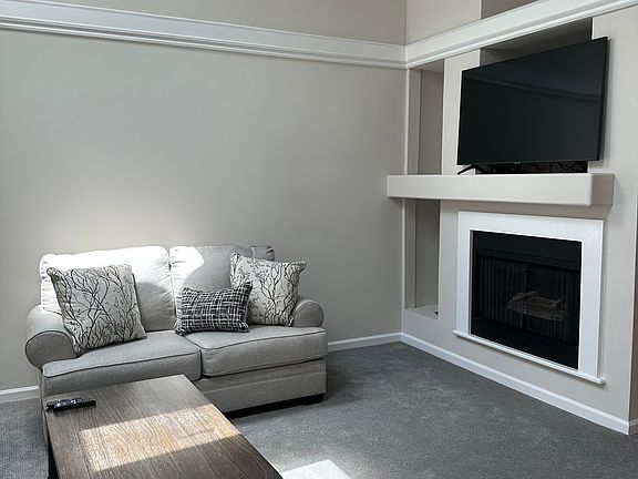 Gas fireplacePrivate covered balconyFresh paintNew carpetBreakfast barRecessed lightingSpacious great room