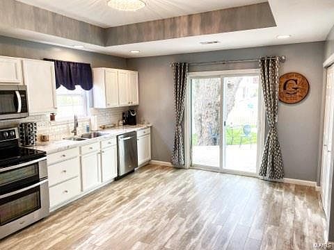 This is a must see 12 year old home perfectly situated in the heart of O'Fallon within walking distance to downtown, shops, restaurants, O'Fallon Station and O'Fallon Community Park. This move in ready home has abundance of natural light, 9 ft coffered ceilings, upgraded kitchen with new counter tops, integrated sink, subway title back splash, stainless appliances including double oven and pantry. Luxury vinyl floors throughout the main level, freshly painted, new deck that leads to backyard with white vinyl fence, additional rear parking, built in shelving for storage in garage. Large utility room for inside extra storage, laundry room is conveniently located off the kitchen. Master suite has his and her closets, full bath and coffered ceiling. Minutes to SAFB. Great location to I-64, 20 minutes to St Louis for shopping and entertainment. Make an appointment today, this will not last long. Buyer to verify all information prior to making an offer, preapproved buyers please.