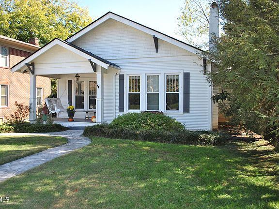 This great Craftsman Cottage is conveniently located in the heart of Johnson City, a few blocks off of North Roan Street & minutes from everything. You will fall in love w/ this well-maintained home. Completely remodeled, it has original hardwood floors and mostly original doors & baseboards, Craftsman-style fireplace surrounded by custom bookcases & windows. There is a formal dining room w/ built-in China cabinet & a reading nook off to the side, a spotless kitchen with stainless steel appliances. The primary is large w/ stunning bathroom w/ double vanity. There are many windows with plantation blinds throughout, a private entrance to the deck off the primary with steps down to the yard and another entertaining space below. The deck off the primary has two entrances - one off the kitchen and one from the primary suite. There are 2 new closets for the primary. The other 3 bedrooms can be used for office space or storage. The laundry room is on the main level with built-in cabinets. The washer & dryer will convey. There is alley access and full privacy fence in back. The front porch has a tongue-and-groove ceiling & is welcoming with the swing and beautiful windows and front door with stained glass window. There is a pretty curved sidewalk to the front door, mature landscaping, pretty windows and shutters to welcome you. The unfinished basement has an inside and daylight entrance. House is on a natural gas line. The roof is new and the warranty is transferable to new owners. The driveway is shared. Buyer/Buyer's agent to verify all information.