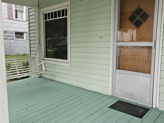 Freshly painted duplex apartment. Livingroom, dinning room, kitchen and half bath with washer and dryer on first floor. Stairway to second floor with 1 main bdrm and 1 small bedroom, walk in closet area, and full bath. One closed-in porch in back and front porch with swing. Very small lawn in back and tiny area with fence in front as seen in picture. Walking distance to school. Nice neighbors and friendly town.
