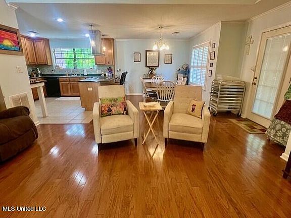 Located in a desired neighborhood this 1 level 3BR/2BA home has a lot to offer! Sitting on 0.64 of an acre the home sits off the road in a picturesque setting. This low maintenance home has an open floor plan, engineered hardwoods in den/dining, plantation shutters throughout. Kitchen includes breakfast bar, new pendulum lighting & a new/updated vent hood that opens the view to the family room & dining. The primary BR includes a sitting area & walk in closet. Bath has jetted tub & shower. 2023 the patio was extended for more entertainment space! Shop includes 110 V electricity. Must See!
