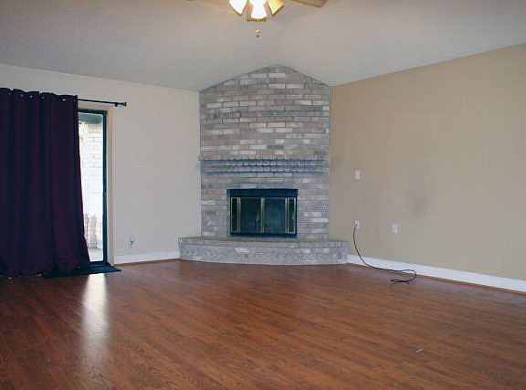This great family home has granite tile in the kitchen, large living area with wood burning fireplace, a split bedroom plan with a large walk-in closet in the master, and separate dining area. Youll find laminate flooring, tile in kitchen and baths, carpet in the guest bedrooms, and decorative tile backsplash in the kitchen with stainless appliances. The backyard has a wood privacy fence and a covered patio. The laundry area is located in the 2 car garage. Stainless refrigerator conveys as do all curtains and rods. AC unit 2012.