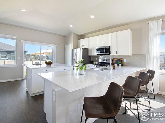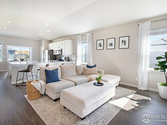 *** $9,000 CREDIT *** to the Buyer(s) to use to either take advantage of a 2-1 buy down, a price reduction, or towards closing costs and prepaids. Experience the magic of Ault and your NEW HOME FOR THE HOLIDAYS! This beautiful 3 BEDROOM, 2 BATH ranch home is LESS THAN 2 YEARS OLD! WEST FACING, FRONT RANGE VIEWS from this CORNER LOT in Conestoga. This home welcomes you to a contemporary OPEN FLOOR PLAN with coved ceilings and LVP flooring throughout the living room and kitchen. The beautiful chef's kitchen has upgraded white shaker cabinets and a massive quartz island and huge peninsula for eat-in dining. It also INCLUDES all stainless appliances including a gas/oven-range, microwave, dishwasher, and LG refrigerator. This home also boasts a primary suite, laundry, guest bathroom, and two additional bedrooms with an optional office space. The barn door in the primary bedroom leads you to the en suite with double sinks, upgraded tile in the step in shower, and custom cabinets in the walk-in closet. It also includes a 2-car HEATED garage with 2 remotes, Central AC, energy efficient furnace, and tankless water heater located in a full unfinished basement for future expansion. Step out onto the upgraded TREX DECK and enjoy your summer nights around the FIRE PIT in your fully fenced backyard. Sprinkler system in both front and back yards as well. Enjoy the peace and quiet of your new home inside and out with a 1 YEAR BLUE RIBBON HOME WARRANTY too!