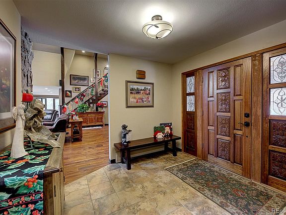 This is foothills living at its best. Located in one of the most beautiful areas of Evergreen, this extensively updated home perfectly blends the great Colorado outdoors with the elegant indoors. The great room with its soaring ceiling, hardwood floors, built-in cabinetry and shelving, gas fireplace and floor to ceiling wall of windows is the perfect place to entertain and relax. It flows seamlessly onto the spacious outdoor flagstone patio with plenty of room for dining and lounging or enjoying the hot tub and all with lovely mountain views! The kitchen, a gourmet chef's dream, has plenty of cabinets topped with quartz and includes a Dacor gas range/convection oven, Dacor dishwasher, SS refrigerator and microwave. You will love the main floor living with its spacious bedrooms and beautifully updated bathrooms. The stunning stairwell leads to the only room upstairs originally built as a library and is currently used as an office with views in both directions of the home.