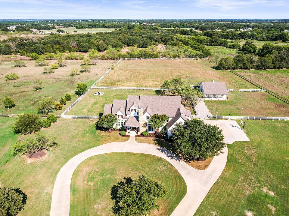 Luxury Meets Country Living on 5 Stunning acres in Argyle ISD***Welcome to your dream estate, perfectly nestled at the end of a peaceful cul-de-sac in one of North Texas' most desirable communities. Located within the award-winning Argyle ISD and close to Liberty Christian School, this remarkable 5-bedroom, 5.5-bathroom residence blends refined luxury with serene country living.***Step through the grand entry into a home designed to impress—featuring soaring cathedral ceilings, a spacious office, and a chef’s kitchen outfitted with high-end appliances and designer finishes throughout. The open floor plan flows seamlessly to the oversized 3-car garage, which includes 2 Tesla Powerwall battery banks for energy resilience.***Enjoy first-floor living with both the Primary suite and a full in-law suite conveniently located downstairs. Two fireplaces provide warmth and elegance, while the upstairs offers additional spacious bedrooms, media room and extra living space.***Outdoors, the amenities are equally exceptional: a resort-style pool with a waterfall, slide, and hot tub; an expansive covered patio with an outdoor kitchen; and a 3-stall horse stable inside a 2-story drive-thru barn, complete with a side carport ideal for RV or extra vehicle storage. The home is powered by a 12 kW solar system, ensuring modern efficiency. ***Whether you're hosting large gatherings or enjoying peaceful sunsets over your private acreage, this home delivers unparalleled style, space, and sustainability. Come take a tour today and experience the modern, country, luxury living yourself.