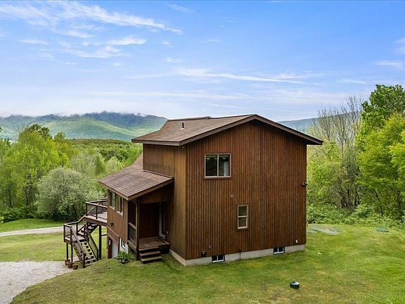 Perched on 11.26 private acres between the Taconic and Green Mountains, this peaceful Danby retreat enjoys sweeping mountain views and a strong connection to the surrounding landscape. Thoughtfully designed to complement its setting, the three-bedroom, two-bath home is filled with natural light, warmth, and charm throughout. The main living area features vaulted ceilings, a fireplace, and a wall of windows that frame the mountain backdrop. The kitchen and dining space open to a spacious deck, creating a seamless transition between indoor comfort and outdoor living. One bedroom and a bathroom are located on the main level, while two additional bedrooms and a full bath are upstairs. Offered furnished, the home is ready for immediate enjoyment, whether as a weekend escape or a full-time residence. This distinctive Vermont property combines privacy, character, and natural beauty in every season.