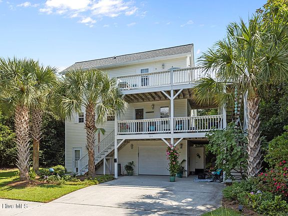 Nestled in a private setting with the soothing sounds of the ocean, this beautifully cared-for home offers the perfect blend of coastal charm and modern comfort. Located in Ocean Forest subdivision, this home is just a short walk to private beach access or a quick two-minute drive to gated beach parking, ideal for families with children or lots of beach gear, and near to local eateries and the island- wide bike path — ideal for embracing the Emerald Isle lifestyle. Enjoy outdoor living on every level, with wraparound decks on both the top and main floors, plus a ground-level patio surrounded by lush landscaping. The deep backyard features a custom-built 12' x 20' workshop—perfect for hobbies, storage, or a creative space. Inside, the open-concept living, kitchen, and dining area provides a bright and inviting gathering space, while the thoughtful layout includes 3 bedrooms, 2.5 bathrooms, a spacious den, and outdoor access on all three levels. Lovingly maintained and move-in ready, this home is a true coastal gem awaiting its next owner!