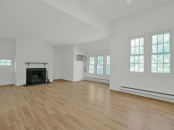 Easy living in the heart of nature, just minutes to two quaint downtowns, welcome to Holly Stream. Approaching along the banks of the reservoir and turning into the conifer lined community, you will find a comfortable home with much to offer. Park in your private garage, the space in front of it, or the unassigned parking area. Down the planting lined path, enter unit 204. Inside, the bright open space of this all one level home greets you. Once past the hallway, with a coat closet on the left, you will find a well-designed galley kitchen, with a pantry, good cabinet space and a cozy eat-in area. From here, the home opens into the large living/dining area. With a high ceiling, wood-burning fireplace and in-wall air conditioner, this great room has plenty of options for your interior design. Down the hall, past the laundry closet, is the large primary bedroom, with high ceilings of its own and two closets. There is also a second bedroom or office across the hall. Off of both the primary bedroom and hallway is the unique five fixture bathroom, with two vanities, a tiled glass shower and a soaking tub. And this is just what the inside has to offer. Holly Stream also has a clubhouse, in-ground pool, playground and circular path throughout the whole community. All of this, just two miles to downtown Brewster and its train station and three miles to downtown Croton Falls, with its own train stop and restaurants and shops. Stop by to see all that this unit has to offer and how you can make it your home.